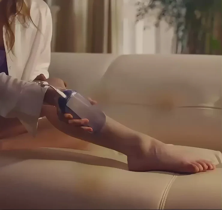 Before and after leg hair removal comparison on a person, showing smoother skin and reduced hair.