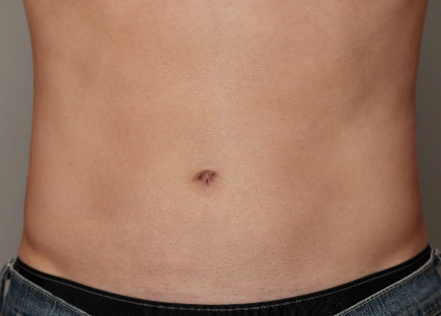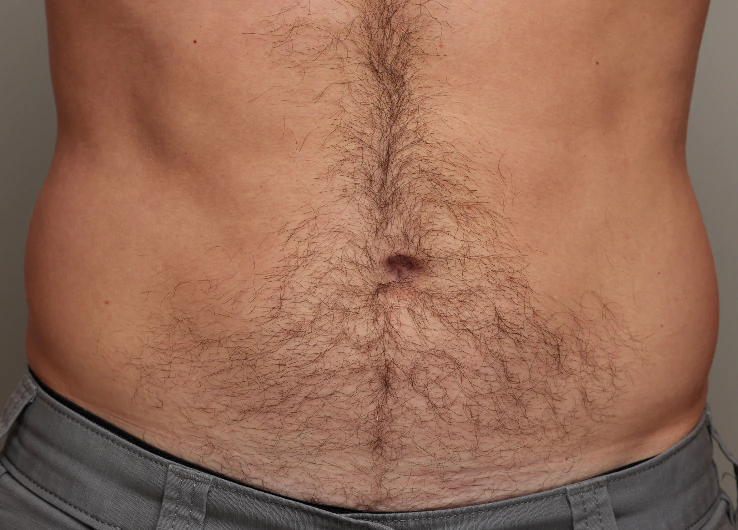 Before and after stomach hair removal comparison on a man, showing reduced body hair and smoother skin.
