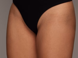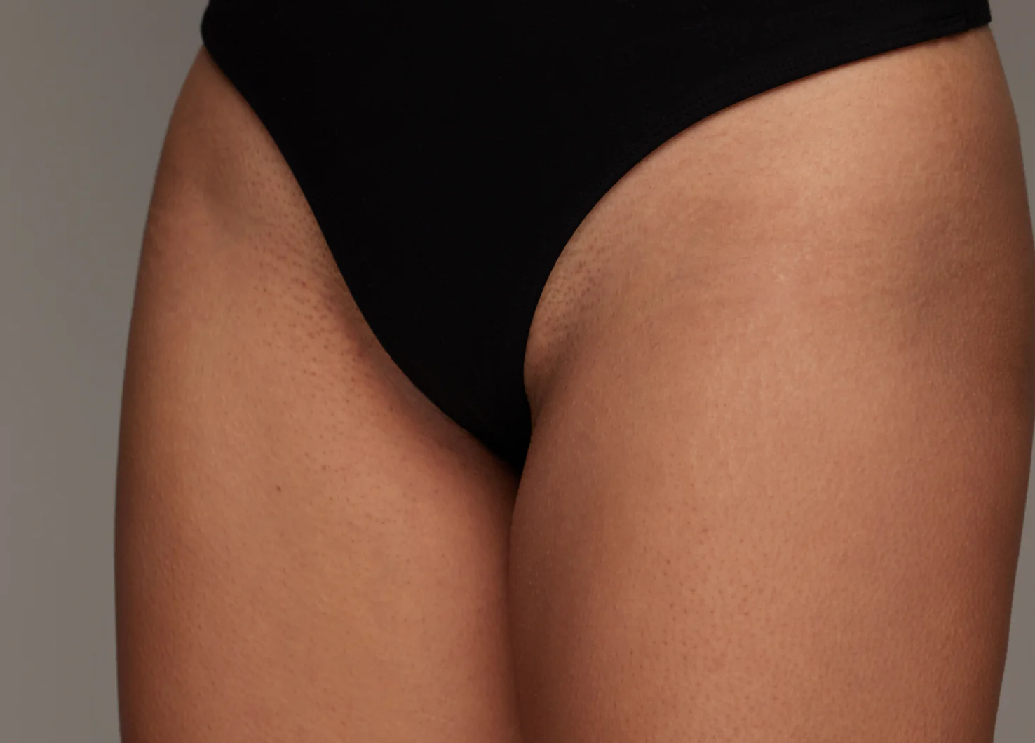 Before and after bikini line hair removal comparison on a woman, showing smoother skin and reduced hair.