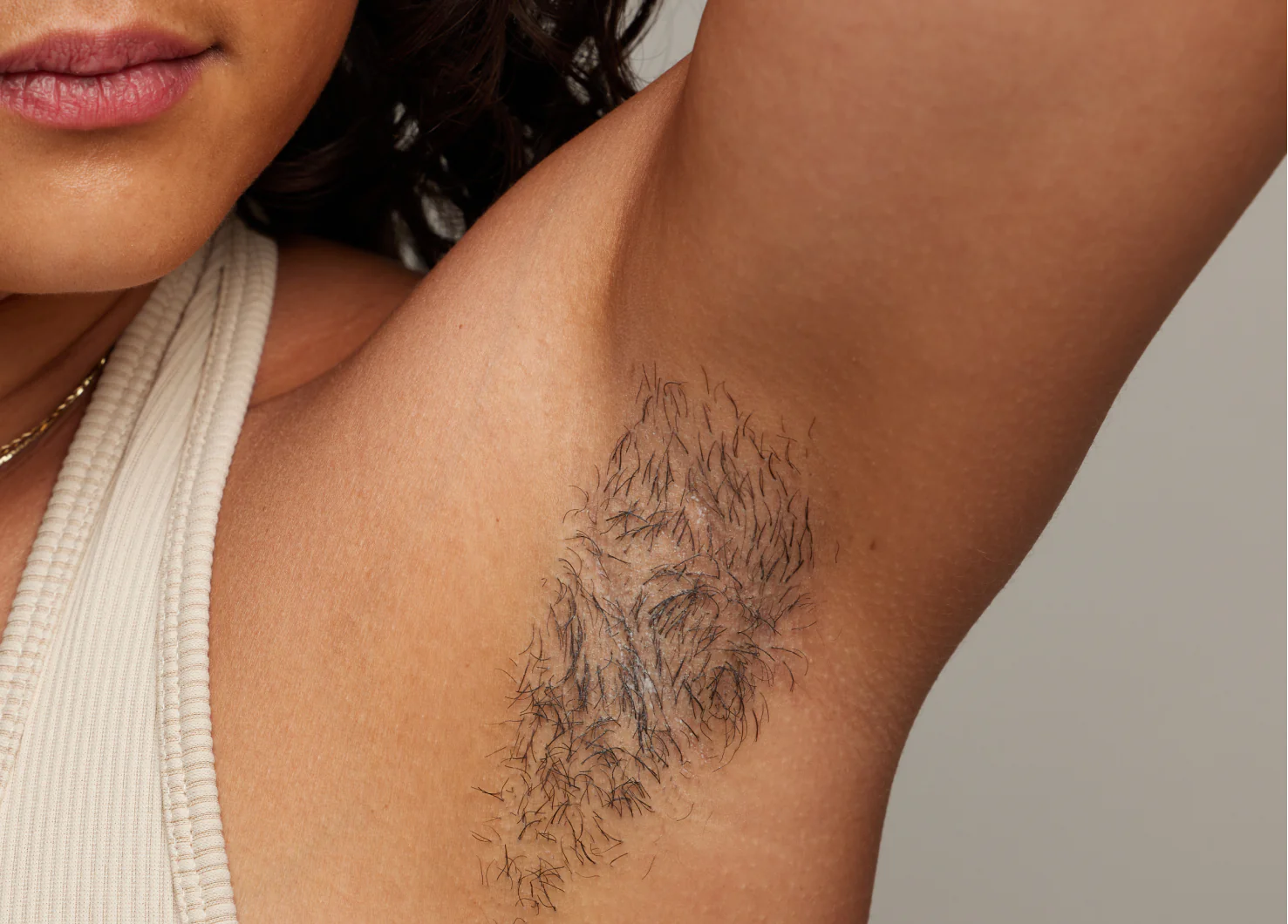 Before and after underarm hair removal comparison on a woman, showing a significant reduction in hair for smoother skin.